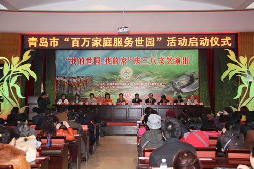 ? 3月8日,青岛市“百万家庭服务世园”活动在李沧区启动.仪式上,市人大常委会副主任吴淑玲,市政府副秘书长张军及市妇联、李沧区的有关领导出席活动。来自全市的妇女干部、巾帼志愿者和家庭代表150多人参加了启动仪式。